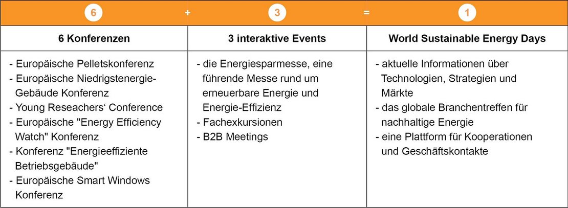 Die World Sustainable Energy Days, eine der größten jährlichen Konferenzen in diesem Bereich in Europa, bieten eine einzigartige Kombination von Veranstaltungen zum Thema nachhaltige Energie.