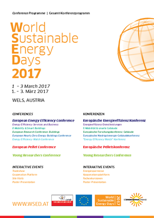 | Teilnahmegebühren: | 205 Euro, inkludiert auch die Konferenz "Energieeffizienz-Dienstleistungen" (2.-3. März), "Young Researchers Conference: Energy Efficiency" (1. März), Konferenz "E-Mobilität & smarte Gebäude" (3. März), "Efficiency Watch" Konferenz (3. März) und die Fachexkursion "Niedrigstenergiegebäude" (3. März nachmittag)